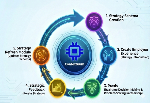 When you update your strategy schema—whether through Refresh or Collaborative Creation—those changes flow through automatically. Employees don’t need retraining. Praxis tools don’t need reconfiguration. Your living strategy stays vital.